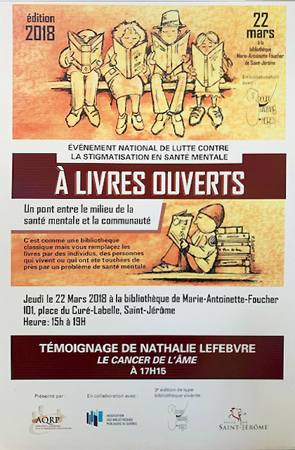 - Organisateur de la Bibliothèque vivante À LIVRES OUVERTS (AQRP-SM) dans les Laurentides